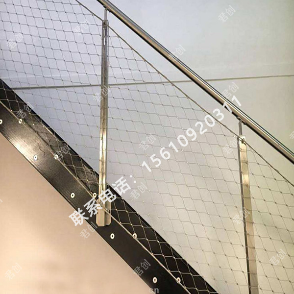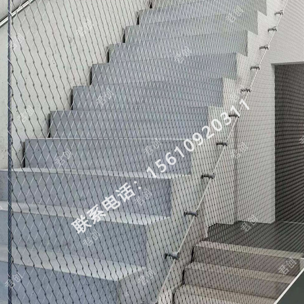 樓梯防護繩網:不銹鋼繩網(扶桿圍欄網)(扶桿防護網)(扶桿軟網)(扶桿柔性網)是由不銹鋼絲繩上下絞織與鋼套擠壓而成,鋼絲繩直徑有1.0、1.5、2.0、3.0mm,鋼絲繩結構有7*7、7*19、1*19等,材質有304、304L、316、316L,其次我們還可以提供熱鍍鋅鋼絲繩網產品。鋼套材質主要采用不銹鋼套,其它還有鋁套、銅套、銅鍍錫套以供客戶選擇。